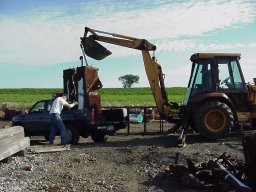 2000 7 8 7:59:28 AM Dick stands clear as Steve uses a back hoe to pull